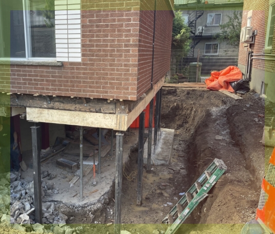 Before undertaking a foundation replacement, an in-depth assessment of the structure and the soil is essential to confirm the best solution. At Fondabec, this analysis is carried out by our experts with the support of our structural engineers. From lifting the house to building the new foundation, we guide you every step of the way to ensure a solid, durable base that complies with current standards.